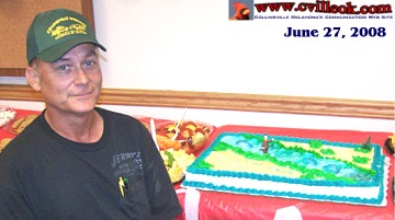 Long time Collinsville auto repairman Jerry Hawkins was surprised by family and friends Friday June 27th, 2008 with a surprise retirement party on his final day of work. Jerry is a 1970 CHS graduate and a former city commissioner. |