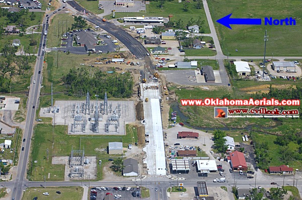 I took these photos from ground level with the left photo from about 7th & Main looking east towards the new bridge. The right photo was taken near the Cherokee Tag Agency looking west toward the bridge (& downtown). -- Ted Wright (Tuesday morning May 6th) | ![]() |