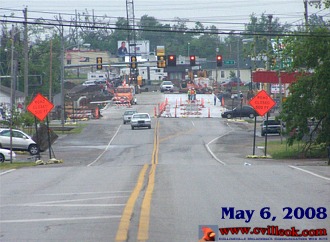 Previous Coverage: Shortly after the new Broadway Bridge was dedicated and the dignataries had cleared the area, traffic from Main Street was detoured to Broadway. This will allow the 2-lane Main Street Bridge over Blackjack Creek to be torn down and replaced with a 4-lane bridge. (Nov. 14, 2008) |