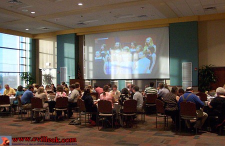 When CHS Chorus Director Bob Humble (already swamped with preparing the chorus for their up coming musical) was approached by 2008 CHS senior Chris Pelton about the possibility of a year-end banquet, he decided to just let Chris run with the idea on his own. The results were impressive with the banquet held Saturday May 10th at the Bailey Education Center in Owasso. The meal was served with a large screen slide show of chorus activities from recent years. There was also a video version of one of the songs from the latest concert. Sophomore C.J. Flynn assisted Pelton with the banquet arrangements and preparation.