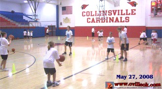 This turtle crossing the exit lane at the high school was lucky the students were not driving by today (as they finished school Friday). The teacher had one more day to put in before they completed their school year. There were a few young basketball students at CHS today (below) as the "Lady Cardinals Camp of Champions" had started. CHS Coaches Stacy & Rogers and several current/former CHS players will be teaching the youngsters basic basketball skills this week. | ||