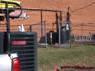 Collinsville City (& Rural) Fireman worked a small fire at Collinsville's First Baptist Church that was reported at about 10:45am Wednesday Nov. 19th, 2008. The fire was apparently confined to the back (south) wall of the Church and started by workman soldering a connection for a new air conditioner. Fireman were connecting hose to the fire hydrant across Main Street (above) and carrying out scorched wall material (below). -- Ted 1:15pm 11/19/2008 |