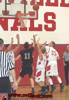 CHS boys beat Skiatook 80-77 in overtime. Adam Harrell (#22 left) scored 26 points