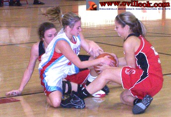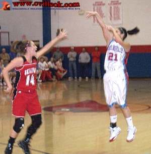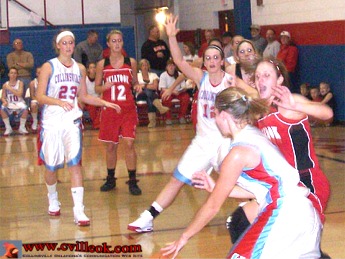 CHS girls beat Skiatook 50-46. Kelsi West (#12 left) scored 23 points.