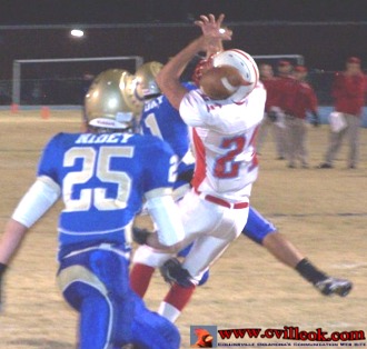 Goosen (#21) caught this Lane Coulter pass in the back corner of the Oologah endzone