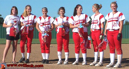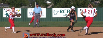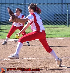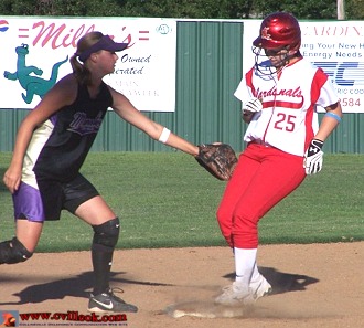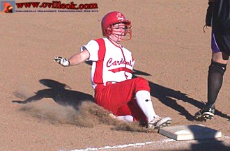 Curtis (#21 left) provided a first inning double for the only run the Lady Cards