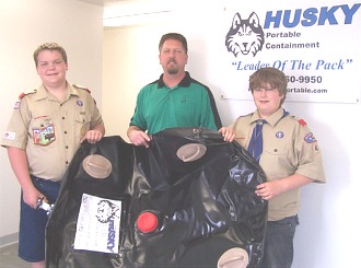 My son, Timmy Caputo, now belongs to Boy Scout Troop 44 there in Collinsville, and they recently had a wonderful donation made to their troop. A company from Dewey, OK made a generous donation of a 50 gal. capacity water bladder for the boys to use on their monthly campouts. Until now, the boys had to take four or five 5 gallons containers on their campouts, and when the water ran out, they had to find a location to go get them refilled. But with this water bladder donation, they wont have to worry about running out of water again! The boys were very excited about getting this donation, and we wanted to be sure to give credit and many thanks to Jay Claeys and the people at Husky Portable Containment up in Dewey!