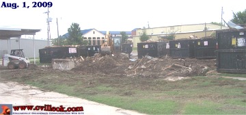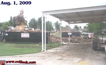 | A First Baptist owned house just west of the church was demolished Saturday August 1st, 2009 near 14th & Main. The house material filled 8 rolloff dumpsters. Several other former residentail houses have been removed from the block over the years leaving just one now (at 13th & Center). |