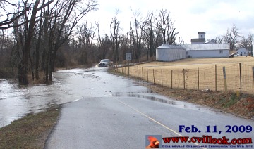 Collinsville received some much needed rain Tuesday Feb. 10th, 2009 which resulted in water over the road behind Holman Seed Farm Wednesday. Other portions of Oklahoma received deadly tornados with our unseasonably warm winter weather. |