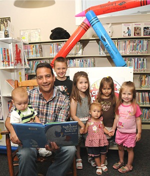 | We had TCCL photographer come out today to take a picture (below) of Mayor Sallee and some of our story time children. -- Susan Babbitt (6/16/2009) |