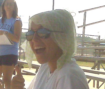 I asked for photos of how folks are staying cool during the recent 100 degrees days ... and received this one Saturday (June 27, 2009) which I beleive is Marysa Trost using wet towels to stay "cool" at a softball tournament. -- Ted |