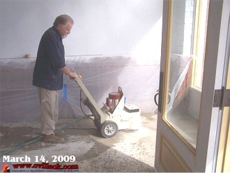 As soon as the building could be cleared last Saturday (after the chili cookoff) work resumed on the future office of Collinsville Downtown Inc. The building is the former city annex building across from City Hall. Brad Francis is grinding the old floor surface above and with an assist from Trent Rogers and Preston Haley below. The majority of the labor had been done by volunteers. There is also some discussion of Chamber of Commerce possibly sharing the office in the future also. A donation by the Roderick family and woodwork by Tharyn Nachtigall are also significant. |