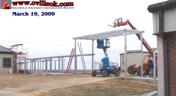 Significant progress on the new canopy connecting the main CHS building with the "freshman" wing was made during spring break last week. The brick facade has started on the north end of the west remote building which is growing by 7 classrooms. Apparently the workers will complete the CHS canopy before starting the Wilson Elementary canopy. |