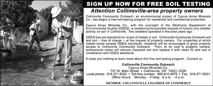 ![]() This web site is brought to you by the Newspaper Museum In Collinsville and the other advertisers appearing on these pages. If you would like to provide news content or advertisements ... call Ted Wright (918) 371-1901 or send email to wrightted@aol.com. 1110 W. Main, Collinsville, OK 74021 | Home