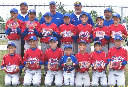 The Oklahoma Cubs are on a roll, racking up the hardware. The Oklahoma Cubs once again take home the trophy with a win over the Arklahoma Chaos during the Super NIT tournament held in Muskogee May 23rd and 24th. This 11 and under team is not only ranked #1 is Oklahoma, but are also ranked #2 in the national standings for USSSA region 4. Keep up the good work cubs. -- Thank you, Stacy Bayouth (5/28/2009) |