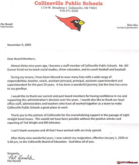 of Superintendent Pat Herald Effective January 1, 2010. --