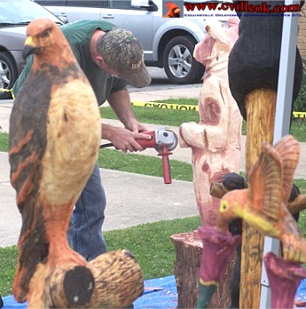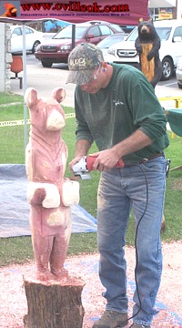 A wooden bear (left) was taking shape outside during the PetPaloosa Sunday.