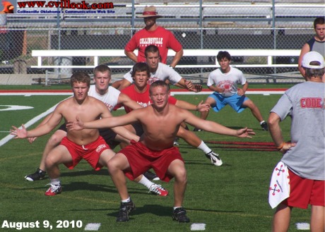 (email questions/comments to wrightted@aol.com). Ted Wright -- last update 8/11/2010 (& 8/12) (FootballComb1stPrac.html) www.cvilleok.com Copyright 2010 -- Collinsville, Oklahoma |