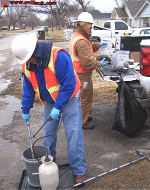 Collection tools are cleaned between samples as multiple samples are collected, tagged and logged. The small holes (drilled with hand tools) are refilled. A full report of the findings will be provided later to the each property owner. The soil program is a project of Cyprus Amax Minerals Co. with oversight by the Oklahoma Department of Environmental Quality. Their local office is at 707 W. Main in Collinsville. | |||||
