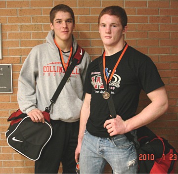 Two Collinsville High School wrestlers competed in the 14th Annual Carman Classics at Pawhuska, January 22, 23. Senior, Jayce Crowder (right) finished 3rd at 171 and Sophomore, Isaac Dyer (left) was champion at 145. -- Submitted 1/25/2010 |