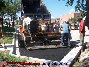 | The asphalt for the new Library (east) parking lot was installed late Saturday evening (July 24th) but the entry and exit for the lot have yet to be completed. I suspect the entry will be left "unfinished" as that area will eventually be under construction for the Phase II streetscape on Main Street. Im not sure what the plan is for the gap at the alley? -- Ted |