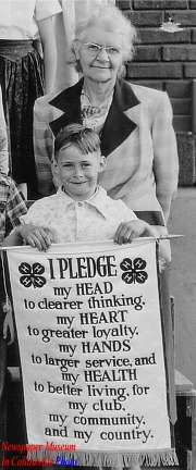 The young lad with the banner is Stevie Hines (in ~1953 4th grade) according to Don Mason in a May 2019 email. |