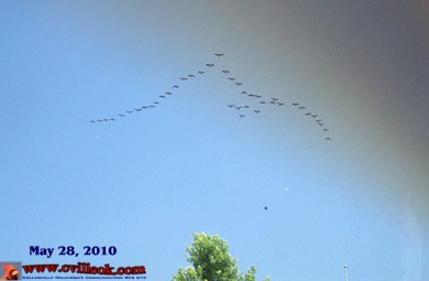 | Looking for a photo to fill this spot ... I found this photo I took about a week and a half back with some unknown birds flying in formation. The dark corner is the shading in my windshield. -- Ted Wright -- 6/8/2010 |