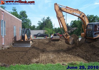 | The ground level adjacent to the police station had dropped a few feet this week as preparations for the new city jail continues. |