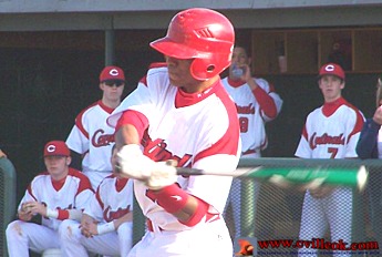 baseman Peter Rodriguiz (#13) led off the Cardinal's half of the second inning