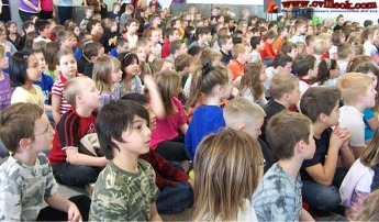 Wilson Elementary's principal and counselor each took a pie in the face Tuesday (March 23, 2010) to show their appreciation to the first & second graders and their parents (& the rest of the community) for their record setting performance at the March 9th McTeacher's fundraising event. They raised $3238 at McDonald's McTeacher night. Mrs. Hunt had promised she would take a pie in the face if her school could top the previous local McDonalds fund raising mark of just over $3000. |