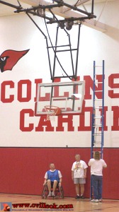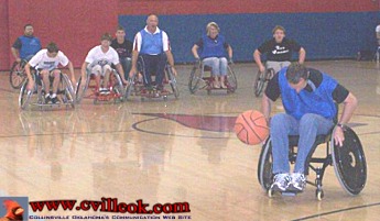 since an August 2007 accident. Several students, teachers and administrators took turns trying to keep up with Logan and his experienced team. It was "no contest" as those new to the wheelchairs found it was not as easy as it may have looked to dribble, pass, shoot or navigate from the chairs. (Previous Coverage) |