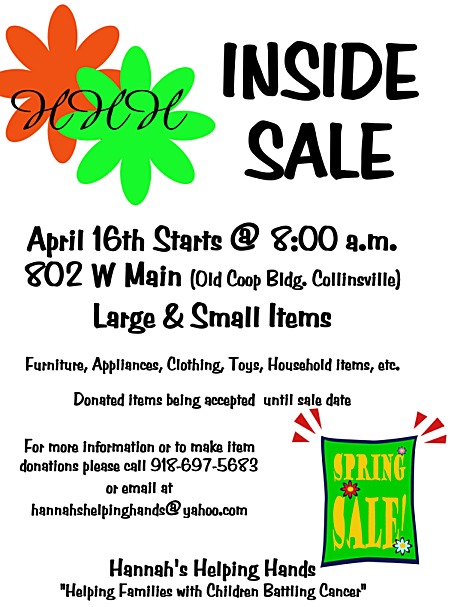 Apr 97am-10am Collinsville Boy Scout Troop 44 hosting Pancake Breakfast at Owasso Masonic Lodge (1 block east of 169 on 76th St N behind QT). 6pm Casino Night for Owasso Community Resources (at BaileyOwasso)