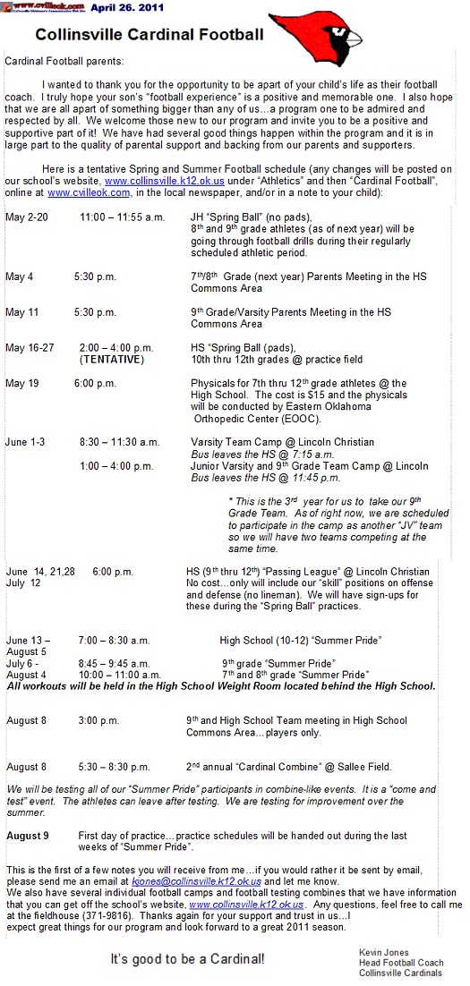 (email questions/comments to wrightted@aol.com). Ted Wright -- last update 4/26/2011 (FootballLetter2011.html) www.cvilleok.com Copyright 2011 -- Collinsville, Oklahoma |