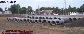 | The last two weeks the contractor pulled off the (s-curve) job. They ran out of things to do until the concrete pipe got delivered. Heard the order was delayed. Heavy equipment was brought back in this week and pipe arrived on site today. -- Phil Stowell (8/4/2011 8pm) |
