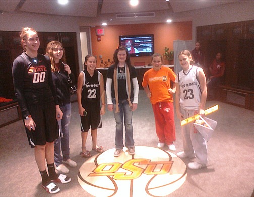 | Collinsville basketball players visiting OSU Cowgirls locker room after Bedlam :) -- Susie Vaughn (2/21/2011) |