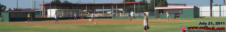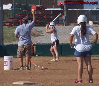 The 2011 High School softball girls started morning practices this week to avoid the afternoon 100+ temperatures but still needed an occasional shade break (below) as they prepare for the upcoming season (see schedule below). |
