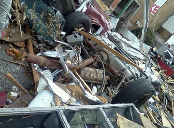 Hey Ted, Me and my buddy didn't feel like we should have left so I sold some stuff for gas and drove back Tuesday night. From there we did debris clean up that Wednesday. That group I was with needed help lifting up a floor from what used to be a shed and flip it over onto a trash pile. There were 4 people on both sides of my as we walked this floor up. When we almost got it flipped over the bottom of it slipped out and fell back down. Everyone else got out of the way except for a lady beside me. She put her hands up to block her face and she tripped and fell. I had noticed her fall and when I looked back up the floor hit me in the face. I knew if i didn't catch the floor it would crush both of us so i kept my strength and out of shear adrenaline I held up a 500lb+ floor until she got out of the way. Shortly after the others lifted it off of me I had a busted up bloody swollen nose. The paramedics told me I needed to go to the ER so I did. Ended up there was no break in my nose. The next day we went out and did debris clean again until that evening, then we decided an almost broken nose was enough and that we did all we could. You are welcome to take any of the pictures from my Faceook. I will label them so you know what buildings are which. Thank you, |