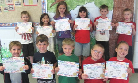 2nd grade 4-29-2011 Back row (l-r): Skyler Croslin, Ady Perez, Riley Cotton, Carmen Luevano, Trevor Chisum, and Joey Rigby Front row (l-r): Evan Goforth, Jack Buckingham, Bryson Talbott, Cross Bell, and David Dowdy |