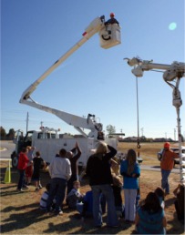 11/16/2011 GRDA teamed with the Collinsville Electric Department to bring the learning experience to town. Children had an opportunity to generate electricity while riding a bike, and also got to see GRDAs hot dog cooker safety demonstration up close. Meanwhile, the Collinsville Crew demonstrated the tools of their trade, used everyday to keep the power flowing across the public power community of Collinsville. The City of Collinsville owns and operates its own electric distribution system and purchases its wholesale electricity from GRDA. |