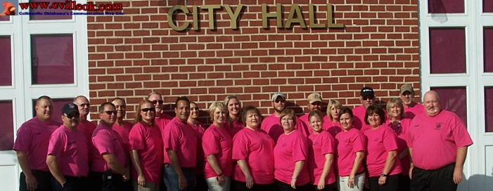 City employees, City Hall, Downtown trees and benches are sporting pink this week to help promote cancer awareness. |