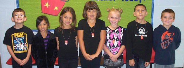 2nd Grade Courage students (10-7-11) -- Ethan Ritter, Mariana Lor, Keeley Warder, Makenzie Hadley, Adason Mathis, David Serna, and Bobby Coyle |
