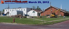 torn down and mostly trucked away by the end of the day March 29th, 2012. |