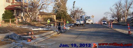 | Curbs, sidewalks and new driveway connections are under construction between 17th & 14th on the new Main Street. -- (Previous Coverage) |