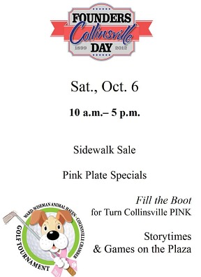 Our goal this year was to highlight the area merchants. Homecoming is Friday night prior and we knew there were quite a few Classes having reunions, said Susan Babbitt, event chairman. We want those alumni, along with everyone else, to take some time and revisit downtown; to see with their own eyes how things have blossomed and to support their town. We have seen fabulous growth in the diversity of our shops and today you can find things in Collinsville that you cant find anywhere else in Oklahoma. Our Founders would be proud. Founders Day weekend will culminate in an all - community hymn sing at 6 p.m. at First Baptist Church, 1301 W. Main. Everyone is invited to attend. |