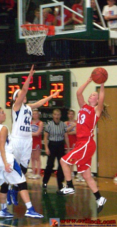 Shelbie Kirby (#5) basket with about 45 seconds left in the State Game -vs-