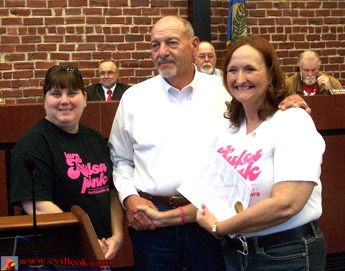 Mayor Weaver presented copies of the city proclamation to Alycia King (left)