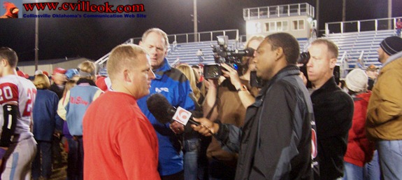 | Coach Kevin Jones was interviewed by Channel 2 and Channel 6 TV Sports News following the game at Pryor Friday. | |||||||||||