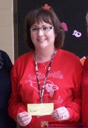 Craig received her check with her Wilson students in the background.