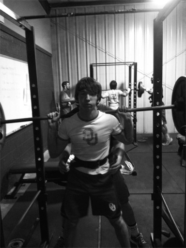 got the photo (above) of the offseason football boys doing a lap and stretching