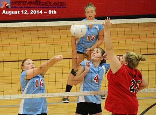 | Zowie Davis (#14) with a hit in the 8th grade game. Olivia Plonczynski (#4) and Megan Green (#13) are also in the action. | |||||